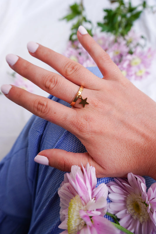 Bague à Breloque en acier inoxydable et ajustable. Sélectionnez votre charm préféré et personnalisez votre bague pour la rendre unique !