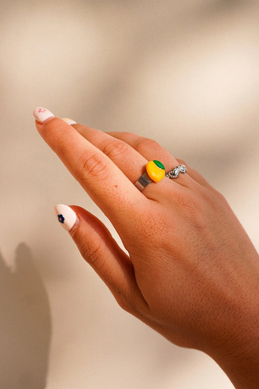 Une bague, ajustable, magnifique avec son petit charm accroché. Trop contente de cette achat. Merci !